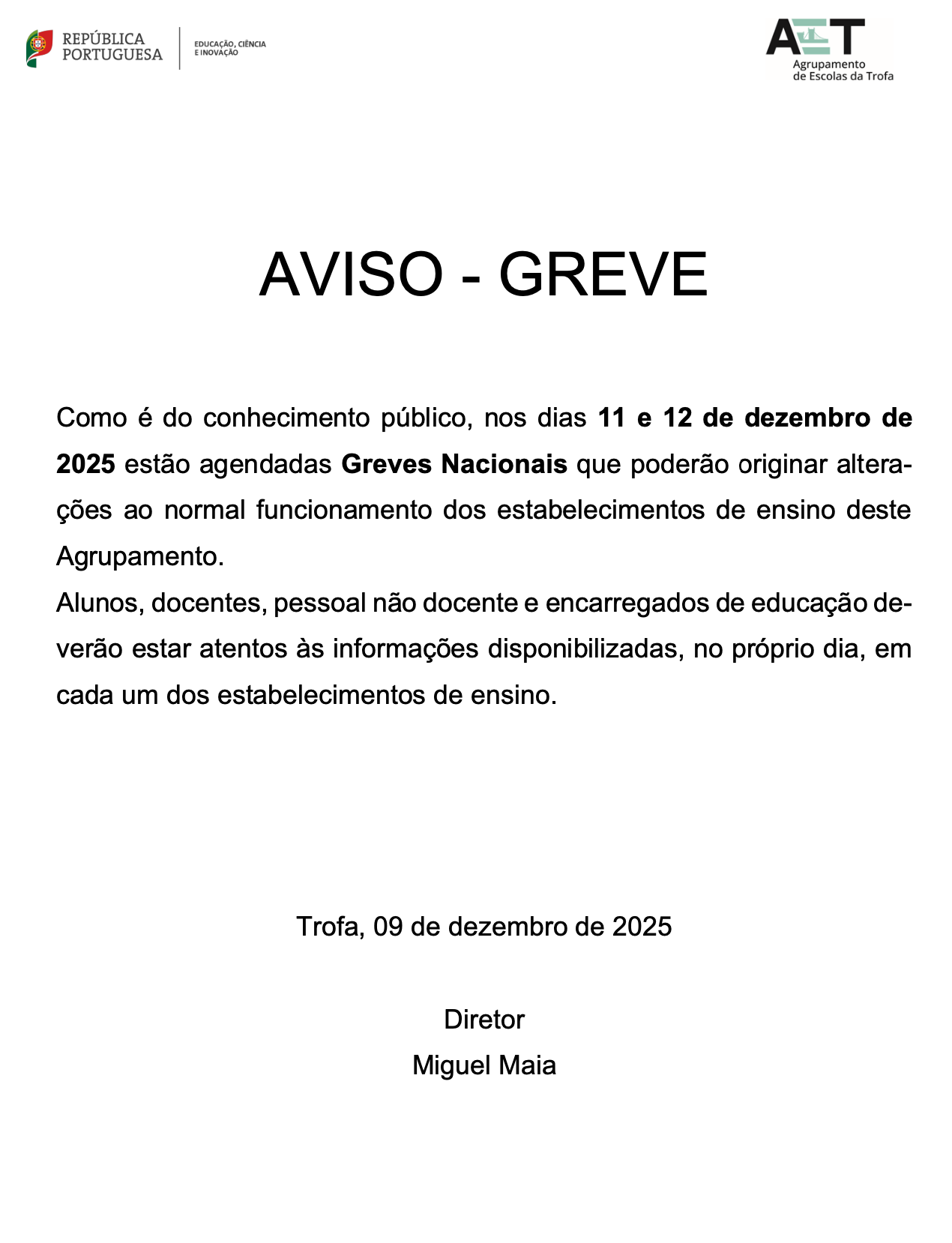 AVISO – GREVE